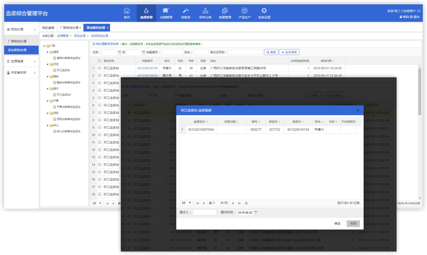 通過(guò)中間層實(shí)現廠(chǎng)家和漿站實(shí)時(shí)同步,廠(chǎng)家陽(yáng)性和漿站陽(yáng)性通過(guò)中間層實(shí)時(shí)鎖定獻漿員和相應的血漿,保證原料的安全。