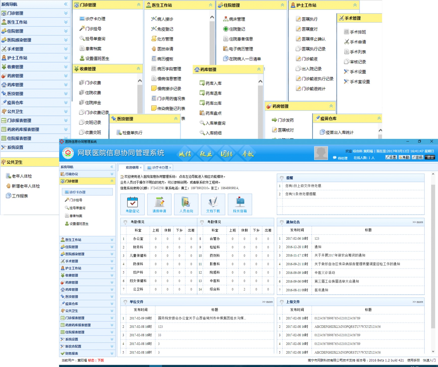 門(mén)診管理 住院管理 手術(shù)管理 收費管理 藥房查詢(xún) 藥庫管理 醫技管理 疫苗倉庫 公共衛生 系統設置 行政辦公 報表管理 醫生工作站